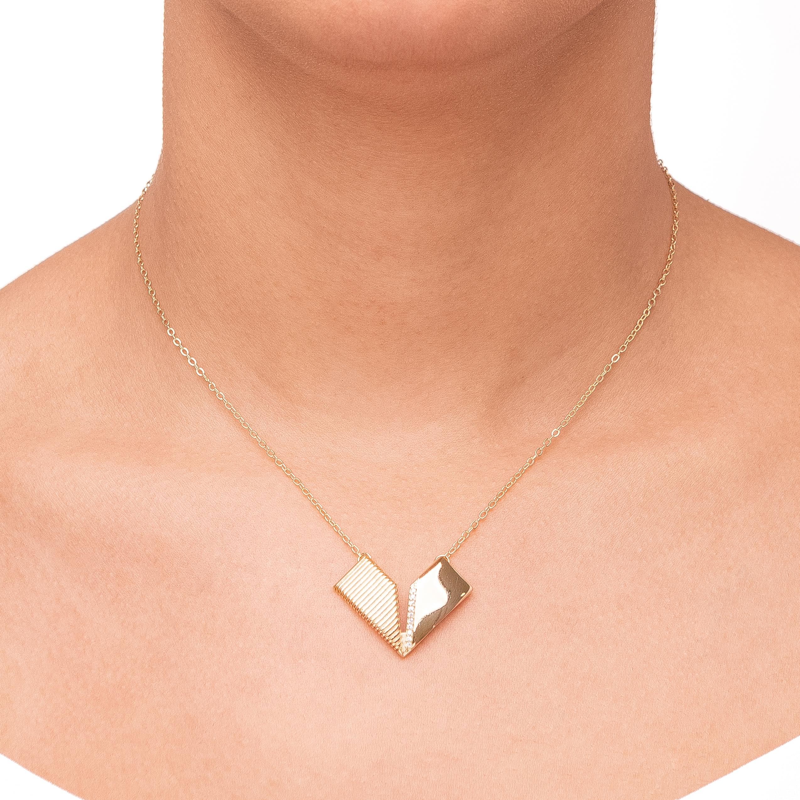 GARGANTILHA EM “V” COM TEXTURAS E ZIRCONIAS